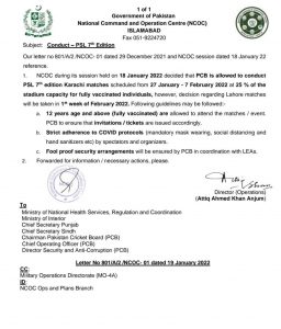 4. این سی او سی کی جانب سے کوویڈ 19 سے متعلق جاری کی گئی ہدایات کی خلاف ورزی کرنے والے شخص کو اسٹیڈیم سے باہر نکال دیا جائے گا