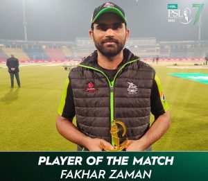 فخر زمان نے 37 گیندوں پر 162 کے اسٹرائیک ریٹ سے 60 رنزبنائے۔ ان کی اننگز میں 5 چوکے اور 2 چھکے شامل تھے۔ کامران غلام نے 6 چوکوں کی بدولت 42 رنزاسکور کیے۔ رہی سہی کسر محمد حفیظ اور فل سالٹ نے نکال دی۔ محمد حفیظ نے 29 گیندوں پر ایک چوکے اور 3 چھکوں کی مدد سے 43 رنز کی اننگز کھیلی۔ فل سالٹ 13 گیندوں پر 26 رنز بناکر ناٹ آؤٹ رہے۔