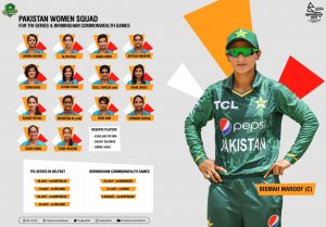 پاکستان، آئرلینڈ اور آسٹریلیا کی خواتین ٹیموں کے مابین سہ فریقی ٹی ٹونٹی سیریز 16 سے 24 جولائی تک بیلفاسٹ میں کھیلی جائے گی۔ کامن ویلتھ گیمز میں پاکستان اپنے تین میچز 29، 31 جولائی اور 3 اگست کو بالترتیب بارباڈوس، بھارت اور آسٹریلیا کے خلاف کھیلے گا۔